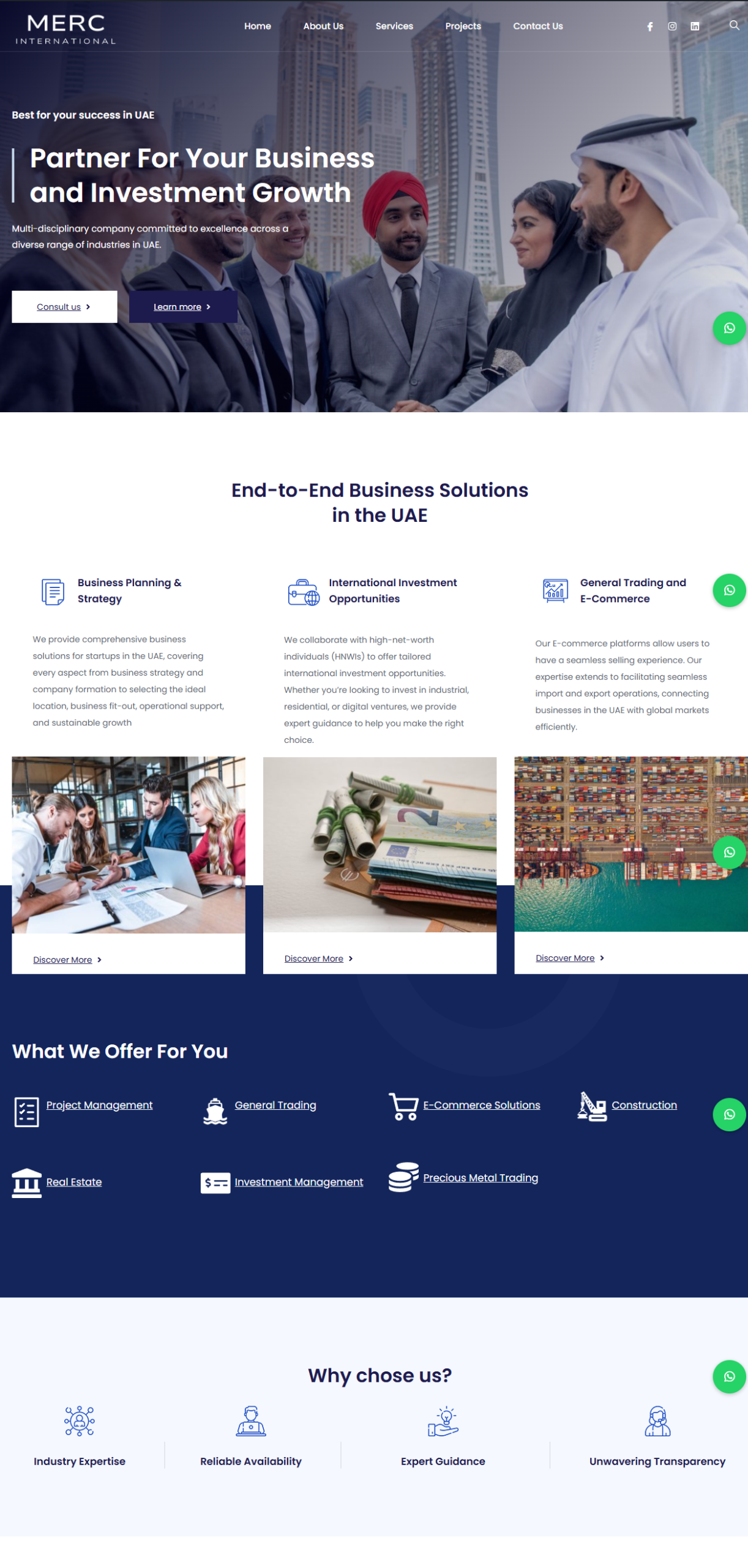 MERC International, specialize in delivering end-to-end business solutions tailored to the unique needs of entrepreneurs, startups, and investors in the UAE. With a deep understanding of the local market and global trends, guide clients through every stage of their business journey — from strategic planning and company formation to market expansion and operational support.